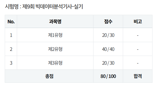 빅데이터 분석기사 사전 점수 결과 합격 입니다!!