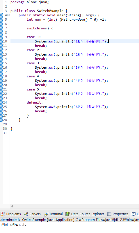 아무래도 switch 문에서 랜덤으로 뽑히는 만큼 default 값도 요리조리 섞어서 해보시면 재밌을 거에요!!!